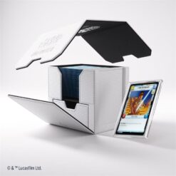 The Deck Pod, an officially licensed premium deck box, is specifically designed for the needs of Star Wars: Unlimited players. UNIQUE FEATURE: The Deck Pod includes a Slide Card Case with additional UV protection for keeping the leader card. Due to the innovative placement of that card, the stored deck can be easily identified without opening the box. The Slide Card Case can also be detached and used during gameplay.
